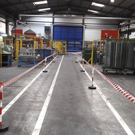 Pintado de líneas de señalización, tiras antideslizantes o diferenciación de zonas en fábrica, talleres y almacenes.
